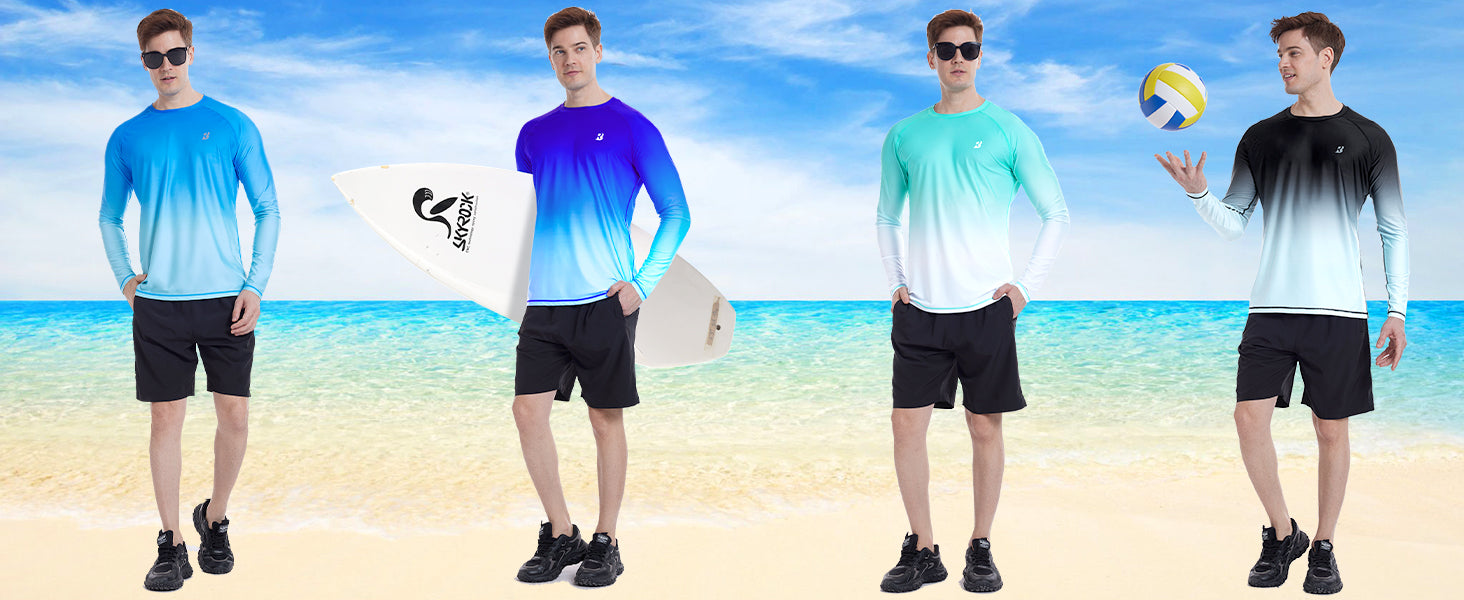 Roadbox UPF 50+ Sun Shirts for Men, UV Protection Long Sleeve Swim Shirt, Lightweight Rash Guard for Fishing Hiking Running