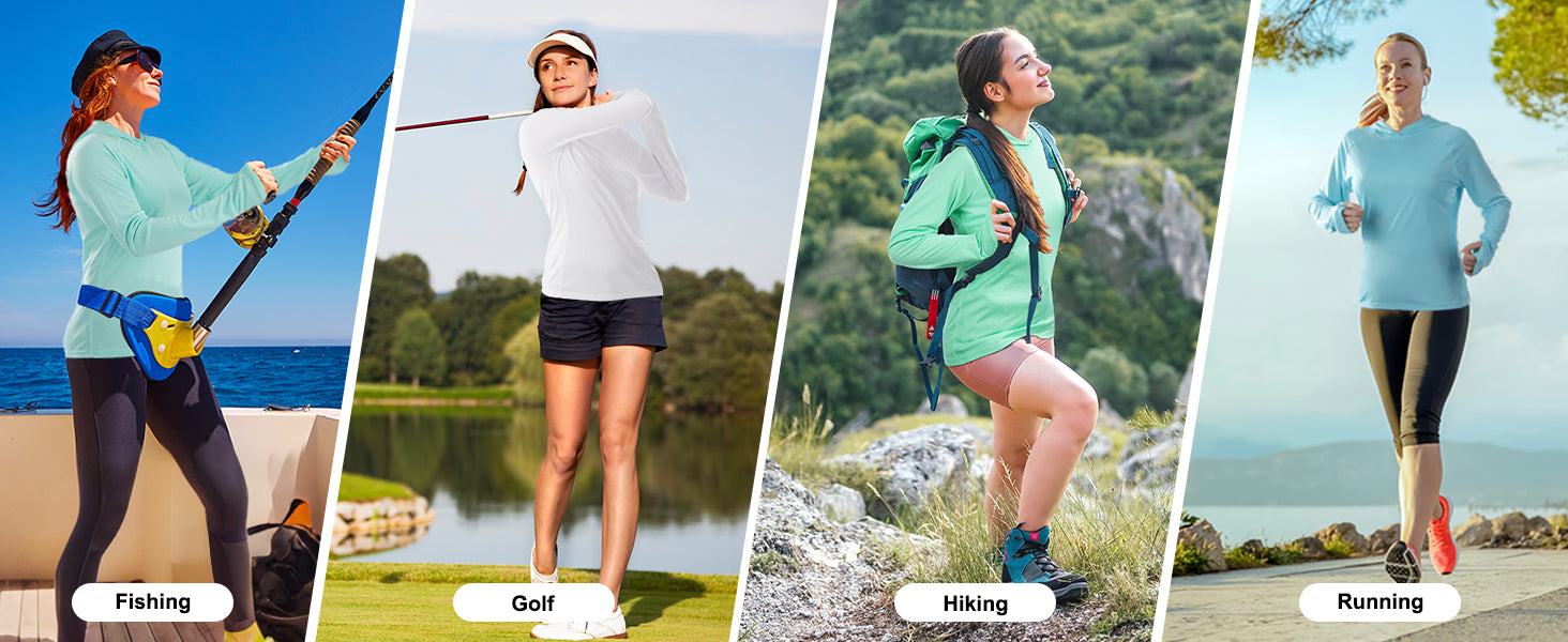 Roadbox Womens UPF 50+ Hoodie, Long Sleeve Sun Protection Hooded Shirts, UV Lightweight Hiking Fishing Rash Guard