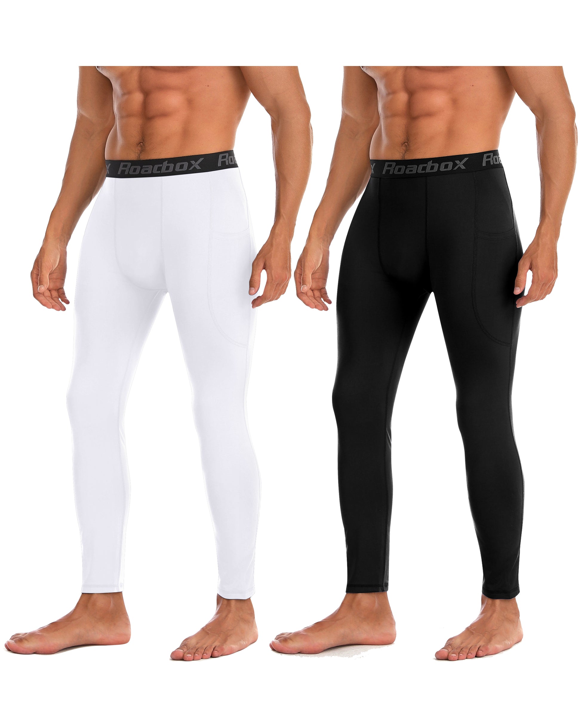 Roadbox 1/2 Pack Thermal Compression Pants for Men Fleece Lined Football Running Tights Base Layer Leggings with Pockets