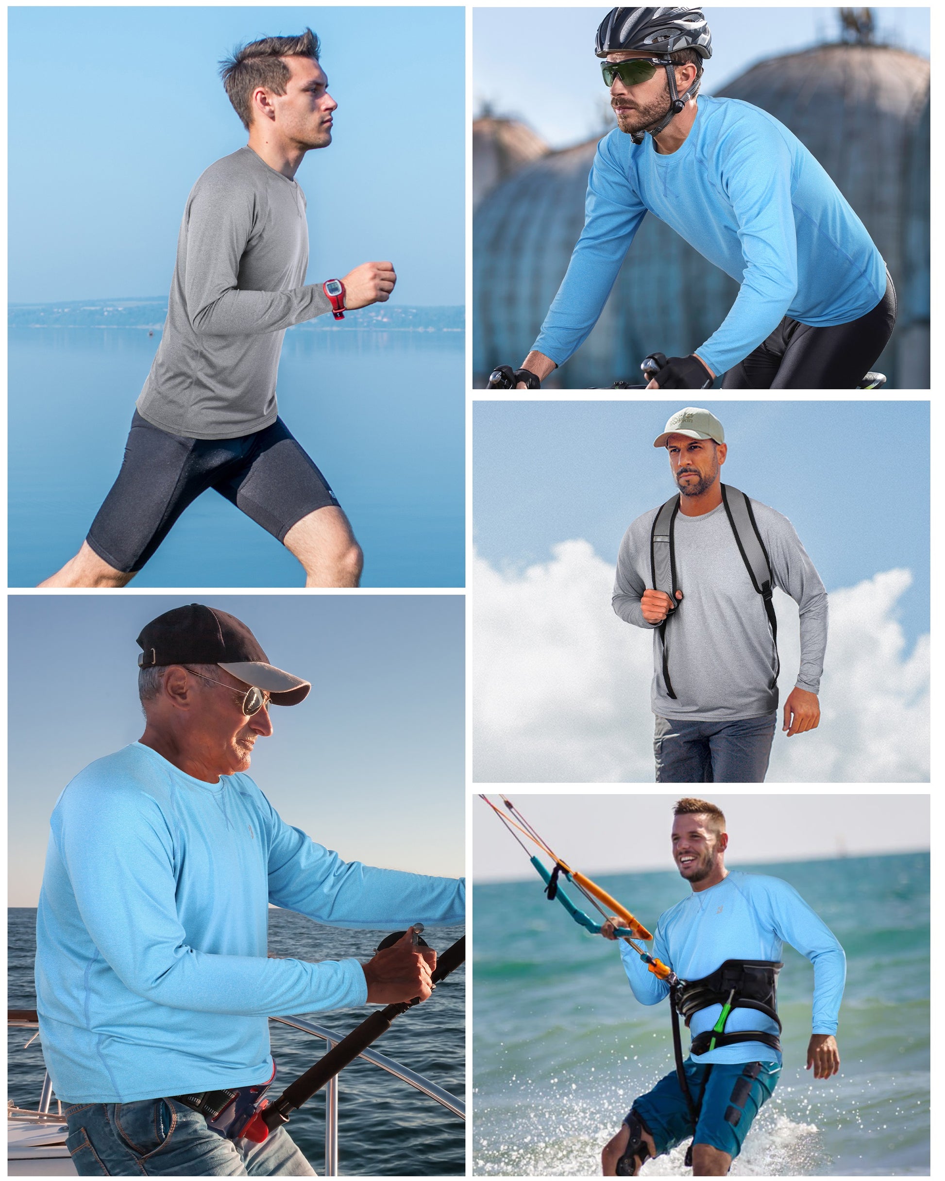 Roadbox Mens UPF 50+ UV Sun Protection Long Sleeve Shirts Rash Guard for Fishing Hiking Swimming Running